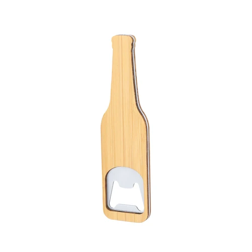 Abridor con diseño de botella en bambú y metal.Materiales como el Bambú fomentan la utilización de materias primas naturales reduciendo las emisiones contaminantes. Además, el bambú proviene de una planta de gran resistencia y versatilidad, con crecimiento y regeneración rápida, siendo una excelente alternativa al uso de madera tradicional.