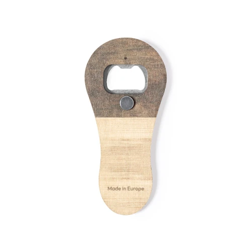 Abridor magnético fabricado en madera natural y de original acabado bicolor. Con mecanismo de apertura metálico, amplia superficie de marcaje y distintivo Made In Europe.