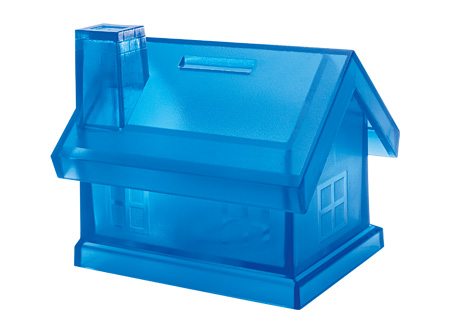 Alcancía "House" con forma de casa. En plástico frozen.