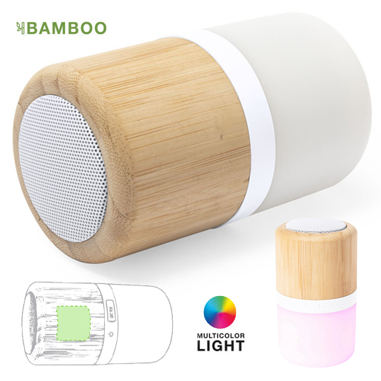 Altavoz de línea nature, con tecnología Led Inteligente y conexión Bluetooth® 5.0. Hecho en bambú procedente de cortes naturales. 3W de potencia, con dos posiciones de luz multicolor y recargable mediante cable USB -incluido-. Presentado en atractiva caja de diseño eco. Ledes Inteligentes Multicolor. 2 Posiciones de Luz. Conexión Bluetooth. Potencia Sonido 3W. Batería 300 mAh