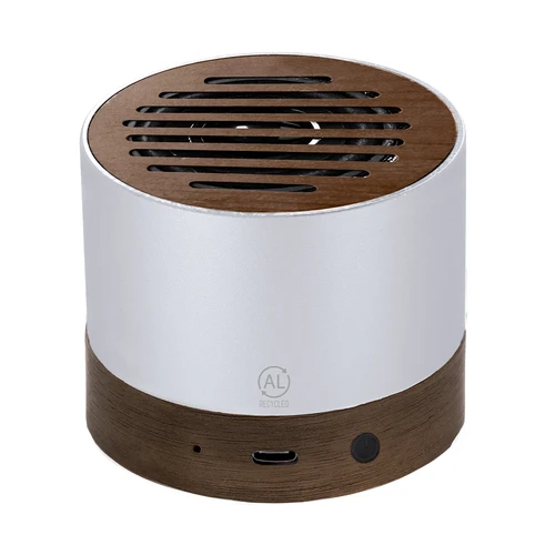 Altavoz fabricado en aluminio reciclado con madera de nogal. Con conexión Bluetooth 5.3 y 3W de potencia. Incluye distintivo Aluminio Reciclado en carcasa. El Aluminio Reciclado es un material con posibilidades de reciclaje casi infinitas, sin perder sus propiedades originales y consumiendo menos energía en este proceso.Elaborado con elementos vegetales para así fomentar la utilización de materias primas naturales y reducir las emisiones contaminantes.Certificación GRS (Global Recycled Standard / Estándar de Reciclaje Global), que garantiza el origen reciclado del material usado para fabricar el producto.