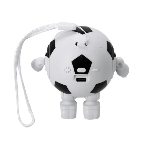 Altavoz con original diseño de balón de futbol bailarín fabricado en ABS. Con conexión Bluetooth® 5.3 y 3W de potencia, y batería de 500 mAh a través de cable USB-Tipo C incluido. Incluye práctica y divertida asa de transporte, para ir con la música a todas partes.