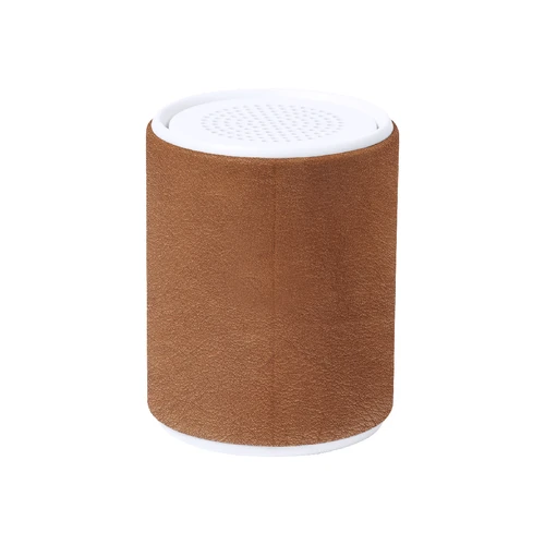 Altavoz Bluetooth con carcasa fabricada en RABS y forrada en cuero reciclado.Con 3W de potencia y batería de 400 mAh. Conexión Bluetooth 5.0, con ranura para tarjeta micro SD y base antideslizante. Incluye cable cargador Tipo C y manual de instrucciones en español e inglés. Presentado en caja individual de diseño kraft.El material RABS o ABS Reciclado y el cuero reciclado proceden del reciclado de artículos al final de su vida útil. Los materiales reciclados empleados incorporan la certificación RCS, que garantiza el origen reciclado de los mismos.