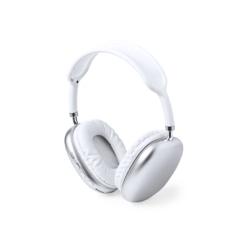 Originales auriculares de diadema con conexión Bluetooth 5.0, de diseño vanguardista y almohadillas cuadradas, en combinación de colores blanco y plateado. Panel de control integrado en el auricular, función manos libres y ranura para tarjetas microSD. Entrada de línea mediante conexión Jack de 3,5mm, incluido cable de 1m. Recargables mediante cable USB (incluido de 30 cm) y con batería de 150 mAh. Presentado en una caja individual de diseño kraft, con papel protector.