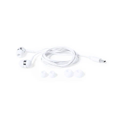 Prácticos y confortables auriculares intraurales con conexión Tipo C. En acabado blanco y con detalles en cromado, incluidos 3 pares de almohadillas para adaptarse a todos los oídos. Presentados en práctico estuche a juego con enrollacables y tapa transparente.