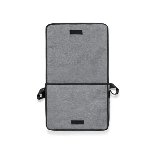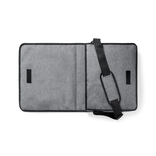 Bandolera fabricada en resistente poliéster 600D RPET. Completamente acolchada, con amplia solapa frontal, cierre de velcro y ribete en negro. Compartimento principal con forro interior, con cinta bandolera ajustable y acolchado para hombro. Con distintivo RPET en etiqueta exterior.El material RPET se elabora a partir de plástico reciclado, para así fomentar la reutilización de residuos plásticos y ayudar a la sostenibilidad del planeta.