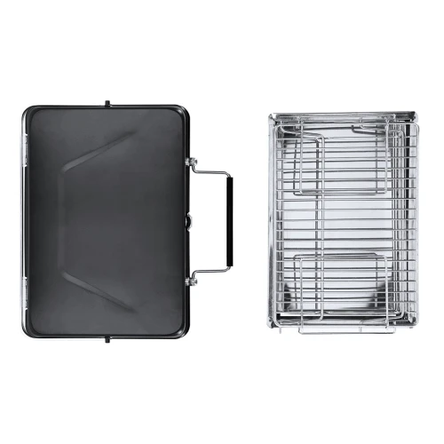 Barbacoa plegable acero inoxidable en acabado mate. Se pliega en formato maletín para hacer más fácil su transporte. Cuenta con una parrilla abatible haciendo más funcional su uso. Patas de sujeción antideslizantes plegables, otorgándole seguridad y estabilidad. Opción ideal para actividades al aire libre, eventos, comidas con amigos o familiares.