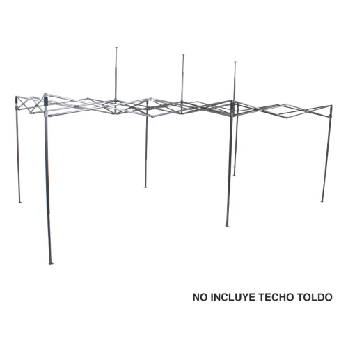 Base plegable de Acero esmaltado, para toldo araña de 3 x 6 m. Altura 2.1m. Se entrega plegada en una caja de cartón de 150 x 24 x 20 cm (16.5kg).