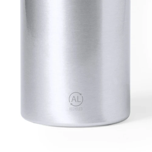 Bidón de 400 ml de capacidad. Fabricado en aluminio reciclado, con posibilidades de reciclaje casi infinitas, sin perder sus propiedades originales y consumiendo menos energía en este proceso. De acabado mate, con tapón a rosca en negro, anilla y mosquetón de transporte. Libre de BPA y presentado en caja individual de diseño kraft.Disponible manual de instrucciones en español e inglés.