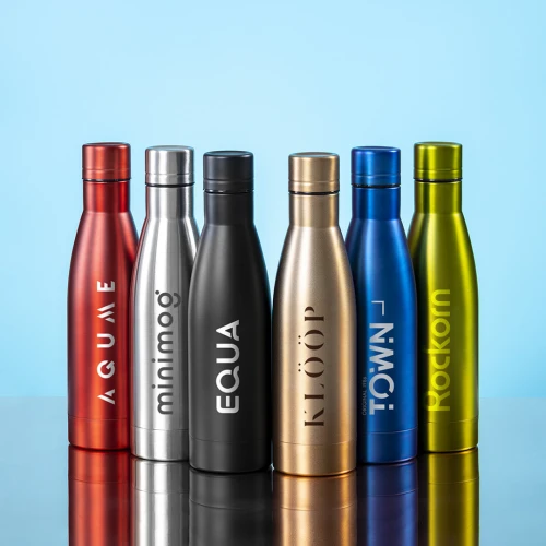 Bidón térmico de acero inox con doble capa de 500ml. Fabricado con doble capa y aislamiento de cobre al vacío, permitiendo mantener el calor y el frío durante un tiempo prolongado, llegando a las 12 y 48 horas respectivamente. Con tapón a rosca para un sellado perfecto. En acabado metalizado y disponible en amplia gama de colores. Presentado en atractiva caja de diseño.