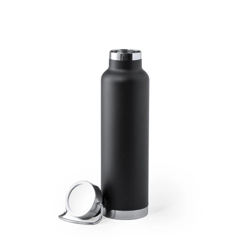 Bidón térmico de acero inox, con doble capa y aislamiento de cobre al vacío. El mismo le permite mantener el calor y el frio durante un tiempo más prolongado, llegando a las 12 y 48 horas respectivamente. De 650ml de capacidad, y disponible en variada gama de colores metalizados. Presentado en atractiva caja de diseño.