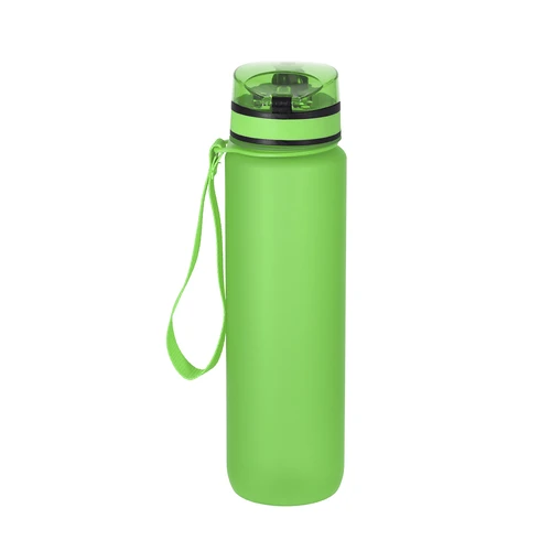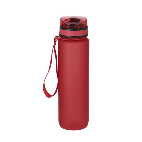 Bidón de 1L de capacidad, fabricado en resistente RPET y en acabado translúcido mate. Con indicador de capacidad en litros y onzas, junto con frases motivadoras que invitan a mantener una adecuada hidratación. Con tapón negro de rosca y tapa con capucha plástica transparente con cierre en push. Con boquilla y cierre de seguridad y cómoda cinta de transporte. Libre de BPA.