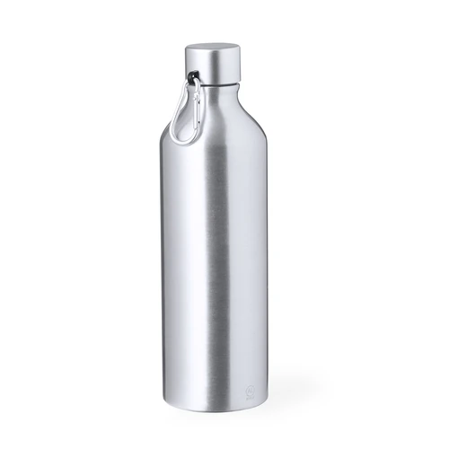 Bidón de Aluminio Reciclado de 800 ml de capacidad. De acabado mate, con tapón a rosca con mosquetón metálico para un fácil transporte y libre de BPA. Disponible en elegantes colores brillo. Presentado en caja individual de diseño kraft. El Aluminio Reciclado es un material con posibilidades de reciclaje casi infinitas, sin perder sus propiedades originales y consumiendo menos energía en este proceso.Certificación GRS (Global Recycled Standard / Estándar de Reciclaje Global), que garantiza el origen reciclado del material usado para fabricar el producto.