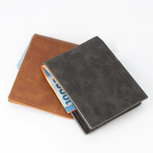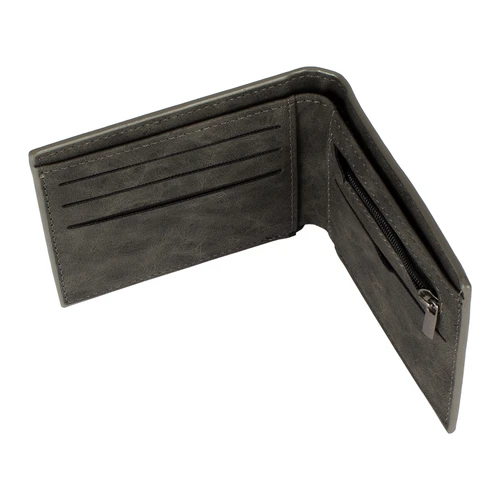 Billetera de eco-cuero, modelo "GEORGIA". Contiene 6 compartimentos interiores, uno de ellos con cremallera. Presentación en bolsa frozen y caja de cartón forrado negro opaco.