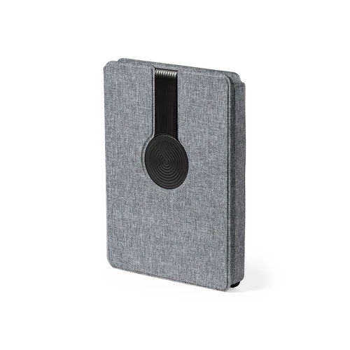 Carpeta/bloc multifunción con cierre magnético fabricada en poliéster 300D RPET, elaborado a partir de plástico reciclado, y etiqueta interior con distintivo RPET.Cargador inalámbrico de 10W, con fijación magnética y multiposición, integrado en portada, que permite usar el dispositivo mientras se está cargando. Accesorio anillo adhesivo incluido, compatible con todos los dispositivos equipados con tecnología Magsafe y Qi. Con cargador inalámbrico para smartwatch en la contraportada interior.Batería integrada de 5.000 mAh de capacidad de carga, con puerto Tipo C de entrada/salida y LEDs indicadores de estado de carga, con cable cargador incluido.Interior con soporte para smartphone y multitud de compartimentos para tarjetas. Soporte para bolígrafo y bloc interior A5 de 64 hojas, con disposición a una raya.Presentada en atractiva caja individual de diseño.Las capacidades mostradas en todas nuestras baterías auxiliares externas son reales, incorporando todas ellas baterías de grado A y no recicladas, con una vida útil de al menos 500 ciclos de carga y según normativa CE. Además, están fabricadas conforme a los estándares RoHS y en cumplimiento con los siguientes requisitos de seguridad:Sistema de protección contra sobrecarga del power bank.Sistema de protección contra descarga completa que proporciona una mayor durabilidad del power bank.Sistema de bloqueo para evitar cortocircuitos.Sistema de transferencia de carga constante, acorde con la capacidad del dispositivo de destino.