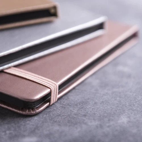 Bloc de notas en polipiel de llamativos colores metalizados. Disponible en colores dorado, plateado y oro rosa. Con tapas rígidas, elástico de sujeción y marcapáginas de tela a juego. Incluye 80 hojas lisas con acabado en color natural.