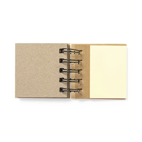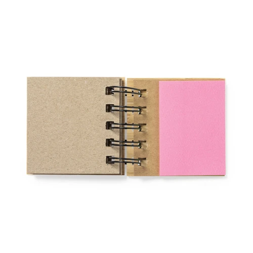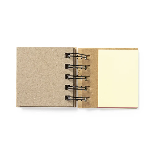 Bloc de notas de anillas de linea nature, con tapas rígidas de bambú. Con 75 notas adhesivas medianas y 125 mini notas adhesivas.