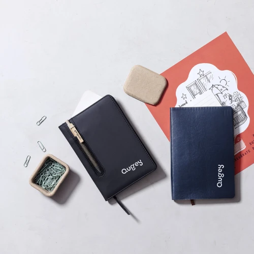 Bloc de notas con suaves tapas en polipiel de acabado flexible. 100 hojas con disposición a una raya y marcapáginas de tela a juego. Disponible en sobrios colores