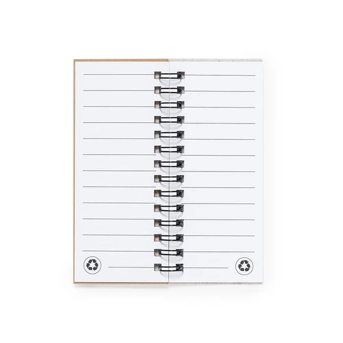 Bloc de notas con tapas en fibra de trigo. Con distintivo wheat straw en la contraportada. Incluye:Bloc de anillas de 30 hojas blancas con disposición a una raya y distintivo reciclado por ambas caras.25 notas adhesivas medianas.125 mininotas adhesivas en varios colores. Elaborado con elementos vegetales para así fomentar la utilización de materias primas naturales y reducir las emisiones contaminantes.Presentado en bolsa individual reciclada.