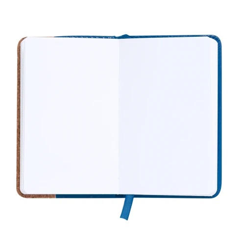 Bloc de notas con tapas rígidas elaboradas con suave corcho. Incluye 80 hojas lisas con elástico de sujeción y marcapáginas de tela a juego. Disponible en amplia gama de colores, con tacto exterior en combinación de corcho natural y polipiel. Presentado en bolsa individual. Elaborado con elementos vegetales para así fomentar la utilización de materias primas naturales y reducir las emisiones contaminantes.