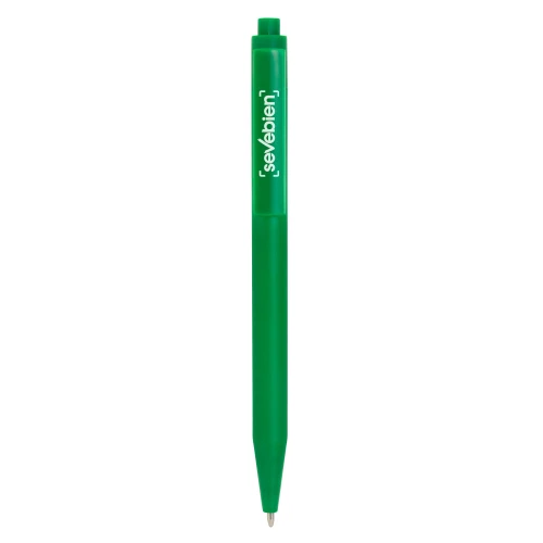 Plástico ABS. Bolígrafo retráctil. Cuerpo y clip plásticos del mismo color, cuerpo acabado mate y clip acabado brillante. Tinta negra. Amplia área de impresión.