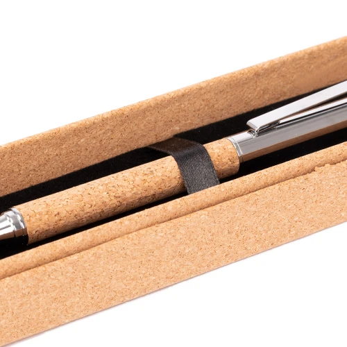 El bolígrafo ARUSHA combina la elegancia del acero cromado con la autenticidad del corcho natural, extraído de manera responsable. Su grip cálido brinda una experiencia de escritura cómoda, mientras que su estuche de corcho reciclado subraya un compromiso real con el medioambiente. Ideal para personalización, ARUSHA es un regalo corporativo que deja huella sin dejar impacto negativo, perfecto para marcas que desean transmitir valores con estilo.