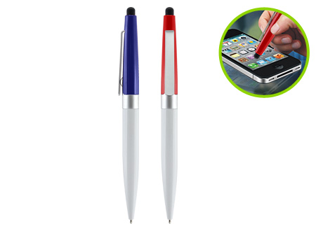 Bolígrafo modelo "Biarritz", mitad metálico/mitad plástico, incluye puntero Touch-Screen. Escritura negra.