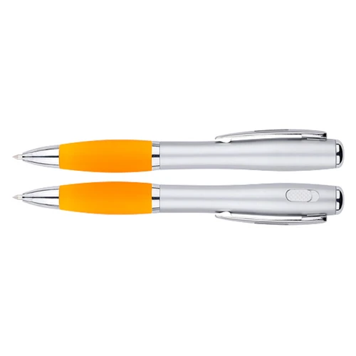 Bolígrafo plástico con linterna LED. Escritura Azul.