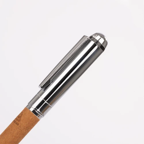 MENDOZA es el equilibrio perfecto entre elegancia atemporal y compromiso sostenible. Su cuerpo metálico con detalles cromados se envuelve en cuero reciclado (PU), aportando una textura sofisticada y una segunda vida a materiales que merecen ser reutilizados. De acción giratoria y acabado en tono marrón, este bolígrafo puede llevar tu logotipo grabado con precisión láser, incluyendo el distintivo R-PU, símbolo de su origen reciclado. MENDOZA es ideal para marcas que valoran la durabilidad, el diseño y el mensaje que transmiten al escribir.