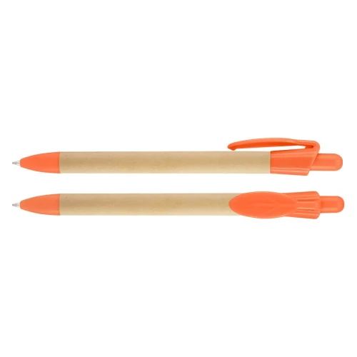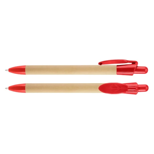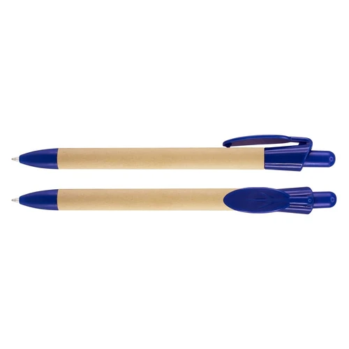 Bolígrafo Ecológico "Leave" con cuerpo de cartón reciclado y clip plástico PET biodegradable con forma de hoja. Escritura azul.
