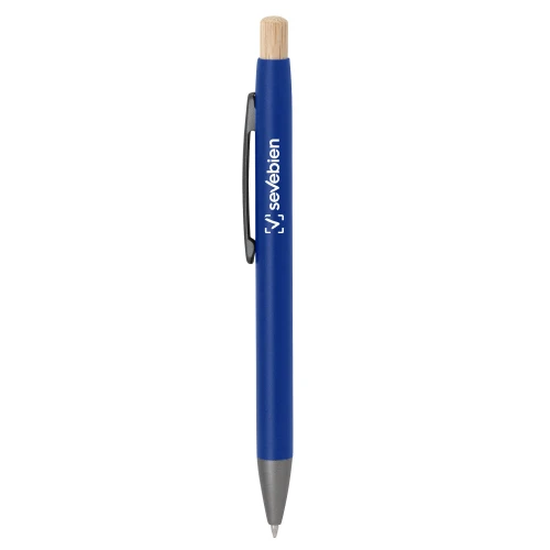 Elegancia en tus manos.Bolígrafo retráctil. Cuerpo metálico en diferentes colores acabado mate. Clip metálico, puntera plástica color gris y pulsador de bambú. Medidas: 14 cm.