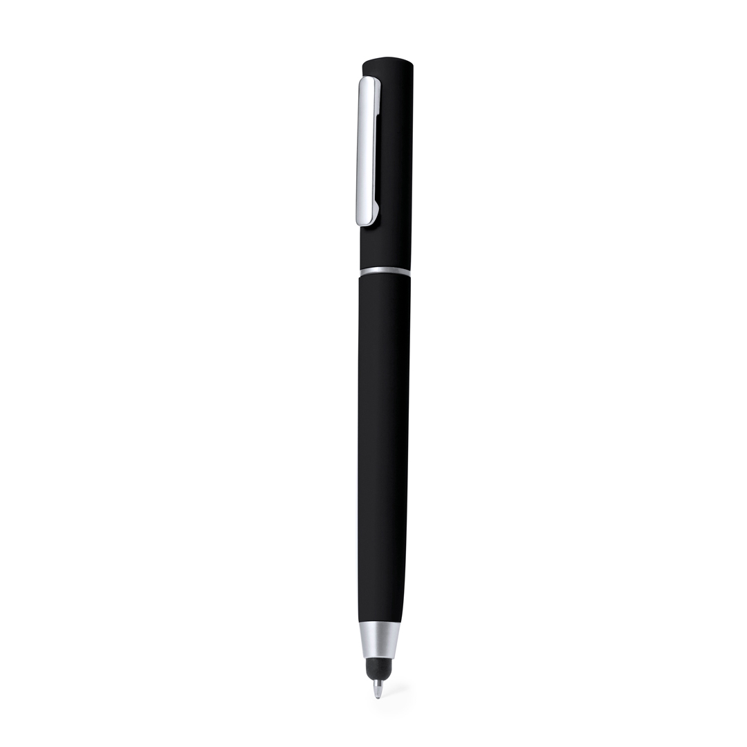 Práctico bolígrafo puntero de mecanismo giratorio, con accesorios de limpieza alojados en la parte superior de la caña. Incluye un cepillo y una punta metálica protegidos por una capucha. Con clip metálico y en tinta azul. Disponible en varios colores y presentado individualmente en caja de diseño kraft. 4 Funciones
