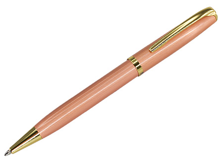 Bolígrafo Metálico Encobrizado, con terminales dorados. Escritura azul.