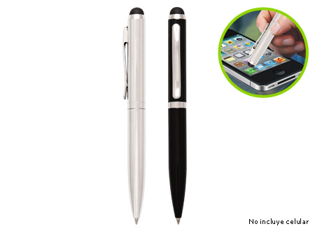 Bolígrafo Metálico modelo "Hotel", con goma posterior negra "Touch-Screen" para pantalla táctil. Escritura negra.