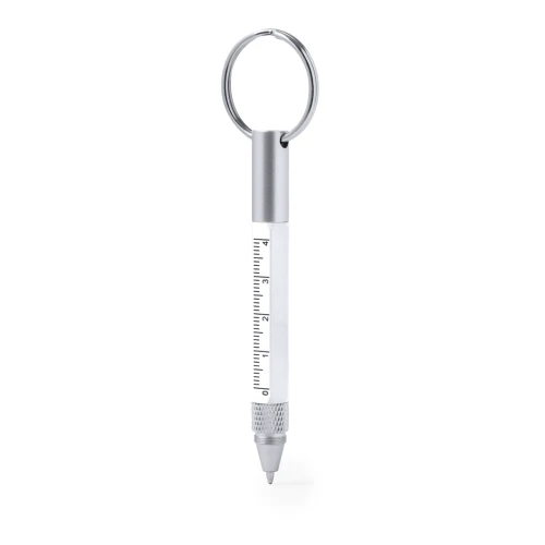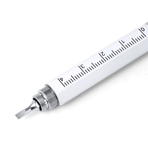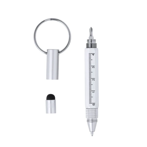 Práctico bolígrafo multifunción fabricado en aluminio. Con 5 funciones diferentes: bolígrafo, regla, puntero, destornillador plano y phillips. Disponible en variada gama de colores y presentado en bolsa individual reciclada.