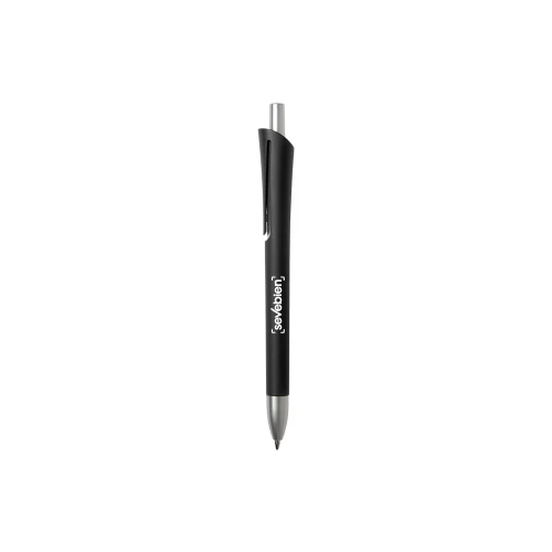Plástico. Bolígrafo con cuerpo plástico de color, botón pulsador y punta color plata. Tinta azul.