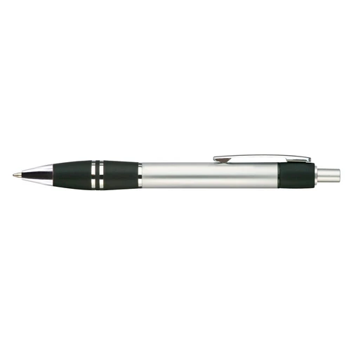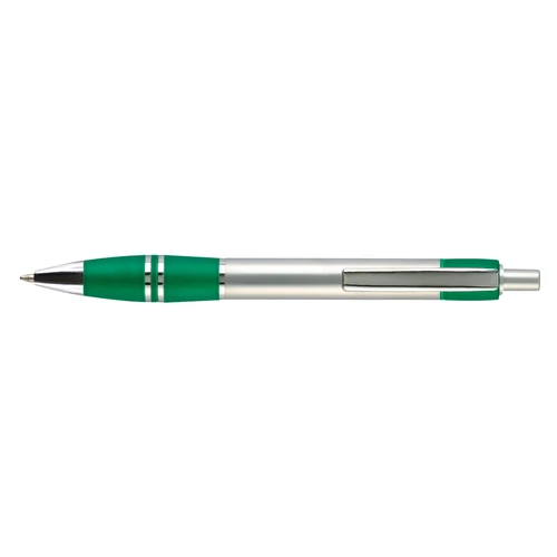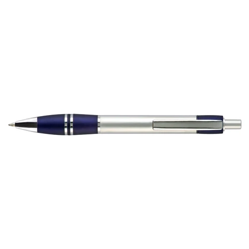 Bolígrafo plástico metalizado "Active" con goma anti-deslizante de color. Escritura Azul.