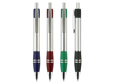 Bolígrafo plástico metalizado "Active" con goma anti-deslizante de color. Escritura Azul.