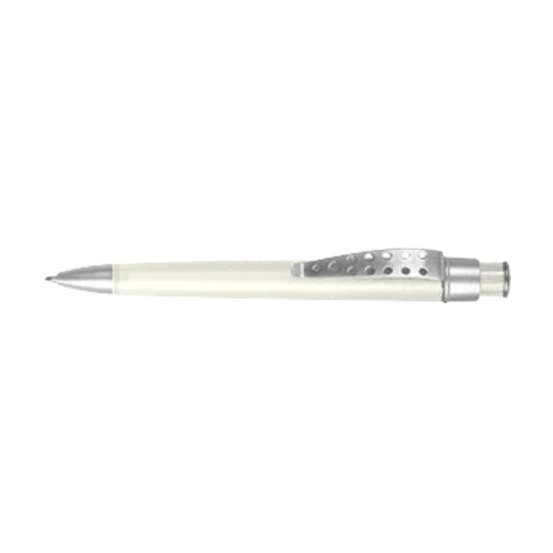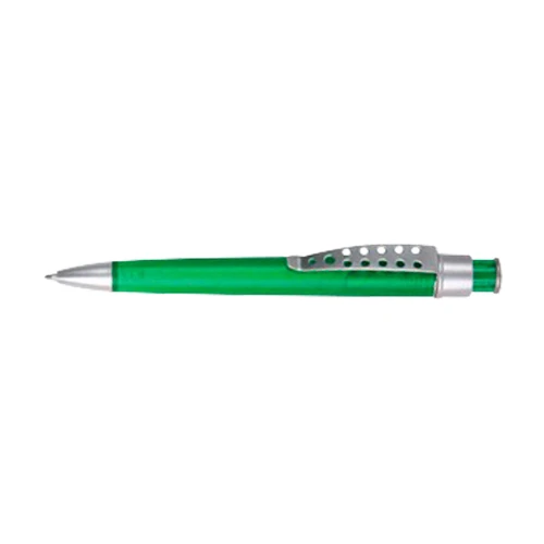 Bolígrafo plástico color frozen modelo "Evolution" con clip metálico con orificios. Escritura azul.