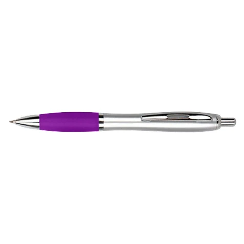 Bolígrafo plástico plateado con goma de color, modelo "Wind Satin". Escritura Azul. El Bolígrafo más famoso del mundo.