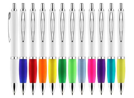 Bolígrafo plástico blanco sólido, modelo "Wind Stella". Escritura Azul.