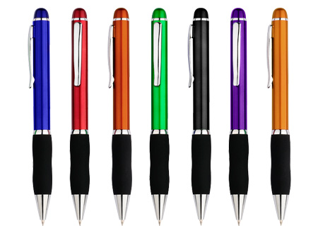Bolígrafo plástico "Qasar" con cuerpo de color metalizado. Escritura azul.
