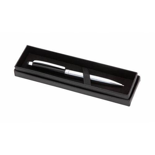 Bolígrafo puntero de Alexluca de mecanismo giratorio con suave cuerpo metálico, de elegante combinación de colores en plateado y negro. Clip y empuñadura de diseño a juego. Presentado en estuche individual negro con logotipo de la marca. Tinta azul.