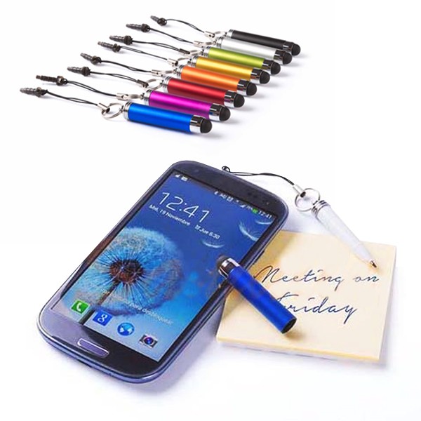 Bolígrafo puntero de diseño minimalista en desenfadados colores, con capucha giratoria de suave acabado, especialmente diseñada para marcaje en tampografía. Con cierre de anilla y sujeción a dispositivo mediante cinta con accesorio de fijación tipo jack 3,5mm. Tinta azul.
