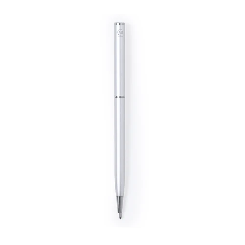 Bolígrafo con cuerpo de Aluminio Reciclado. Clip metálico y accesorios cromados. De mecanismo giratorio y de tinta azul. Con logotipo Aluminio Reciclado.El Aluminio Reciclado es un material con posibilidades de reciclaje casi infinitas, sin perder sus propiedades originales y consumiendo menos energía en este proceso.Certificación GRS (Global Recycled Standard / Estándar de Reciclaje Global), que garantiza el origen reciclado del material usado para fabricar el producto.