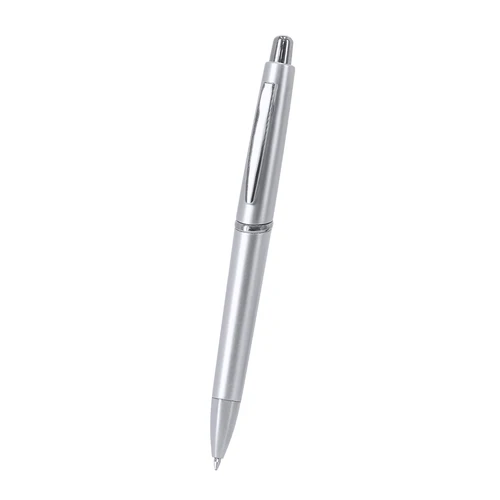 Bolígrafo de mecanismo pulsador en resistente ABS. Fabricado en elegante diseño con accesorio cromado, con pulsador, clip y punta en combinación. En tinta negra.