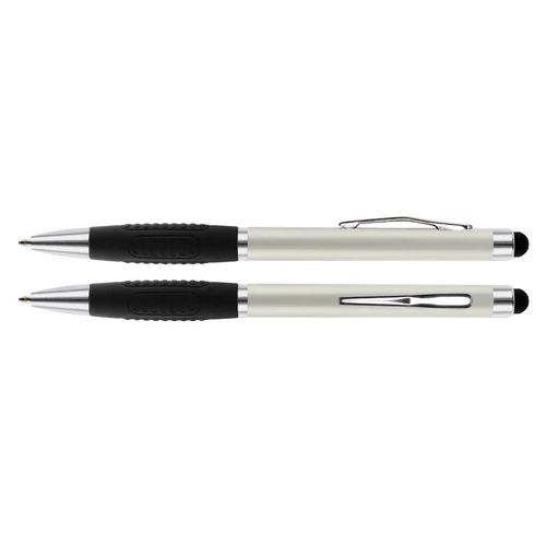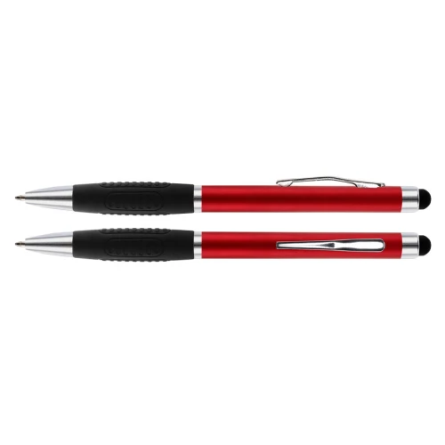 Bolígrafo "Alabama" con cuerpo de color metalizado y puntero touch-screen para pantalla táctil. Escritura azul.