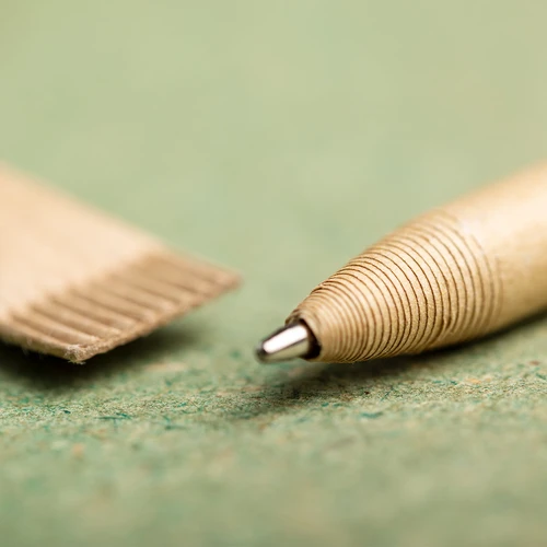 Bolígrafo de línea nature en cartón reciclado y original capucha a juego. Con tinta azul y disponible en variada gama de colores nature.