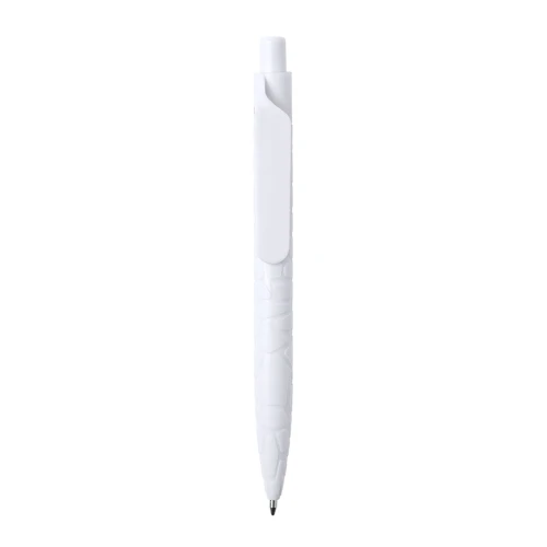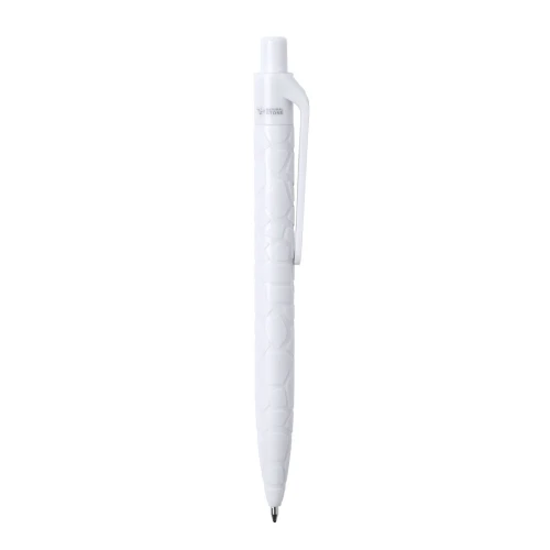 Bolígrafo de línea nature y mecanismo pulsador. Cuerpo troquelado fabricado con extractos de piedra natural, ayudando a la reducción del uso de plásticos, además de proporcionar un acabado suave y resistente. En color blanco y con distintivo natural stone en la parte superior, de cartucho jumbo y en tinta azul.