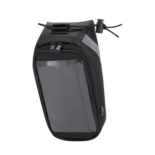Bolsa para bicicleta en resistente poliéster RPET 600D con acolchado y frontal con función táctil. Cierre de cremallera e interior forrado con compartimento para smartphone. Bandas laterales reflectantes para mejor visibilidad. Cierre doble de velcro para acople en barra y manillar.